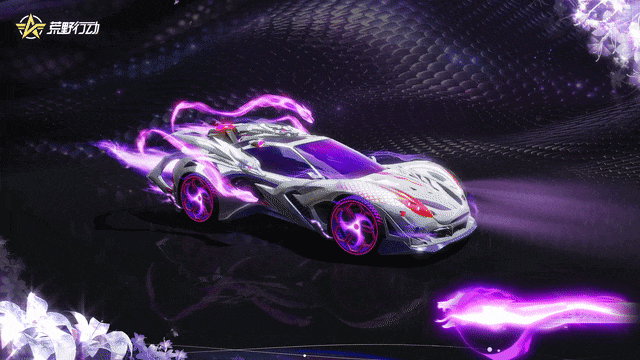 车尾拖曳出迷雾般的紫粉色光带,光带中缠绕着蛇形虚影,像 “蛇形异兽破风而行”,视觉冲击力拉满。