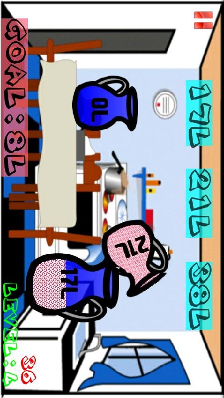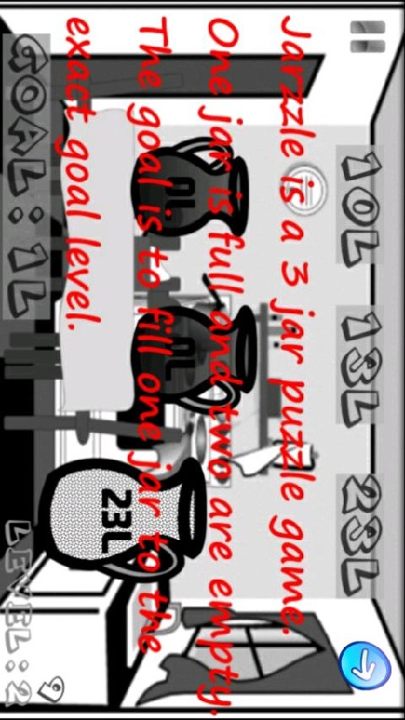 Jarzzle is a simple and addictive puzzle and brain teaser game. You start with three jars, two empty and one full. The goal of the game is to fill one jar to th...