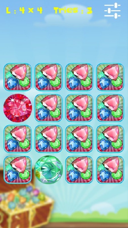 How to play?- open gem card block and memory it in your brain- try to pair same picture of jewelsOnly with us you can :- Unlimited blatz for fun- Lots of diamond set card- Spend your free time matching gem game- Rush for new adventures and Levels- You will love this awesome game, that absolute novelty on your android device