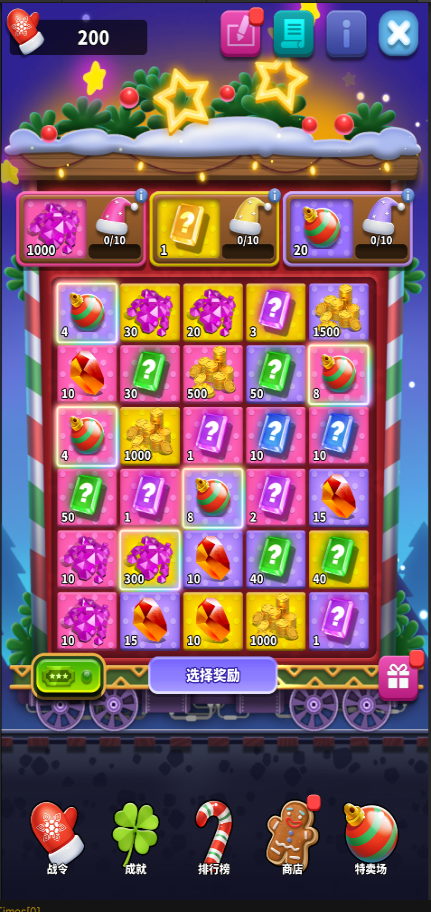1.消耗1雪花手套,可翻开1次贺卡(每张贺卡包含30个格子)