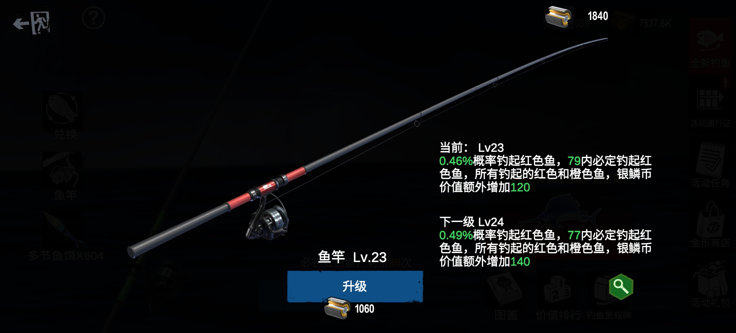 钓起鱼后将自动转为银鳞币,其中橙色和红色鱼还将额外获得金鳞币,使用活动道具可在兑换栏兑换众多奖励,请合理安排数量,不至于浪费。