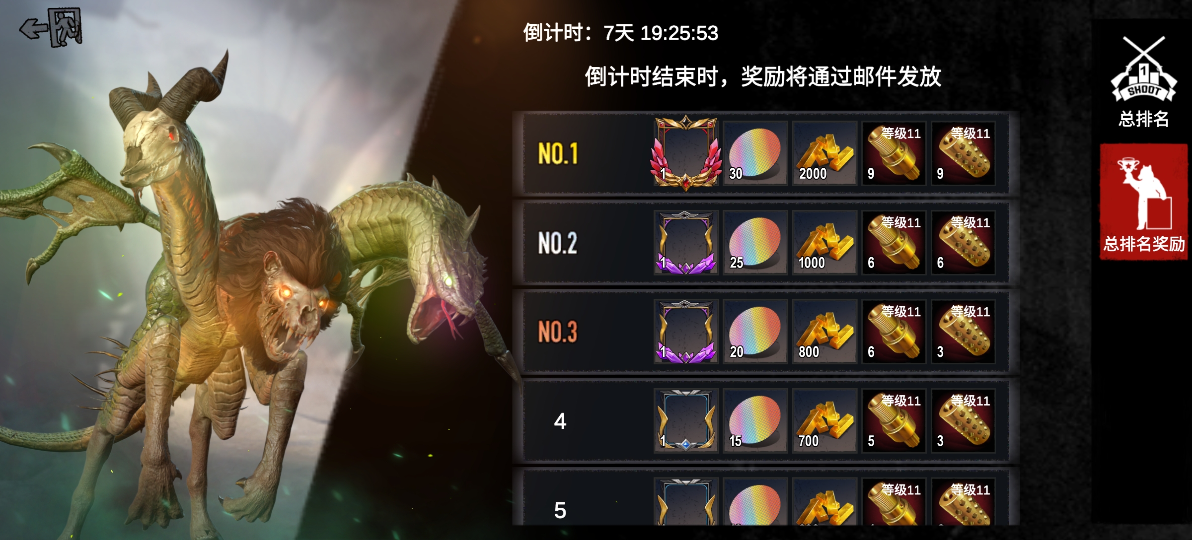 6、以单轮积分高低进行排名,可获得排行榜奖励。