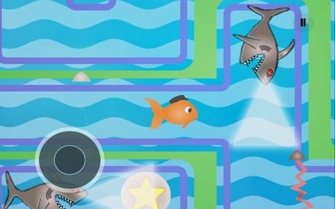 《狡猾的鱼 Sly Fish》是一款休闲游戏,使用虚拟摇杆控制你的小鱼移动,收集全部三颗星星即可打开通往下一关的道路,不要被巡逻的鱼抓到。