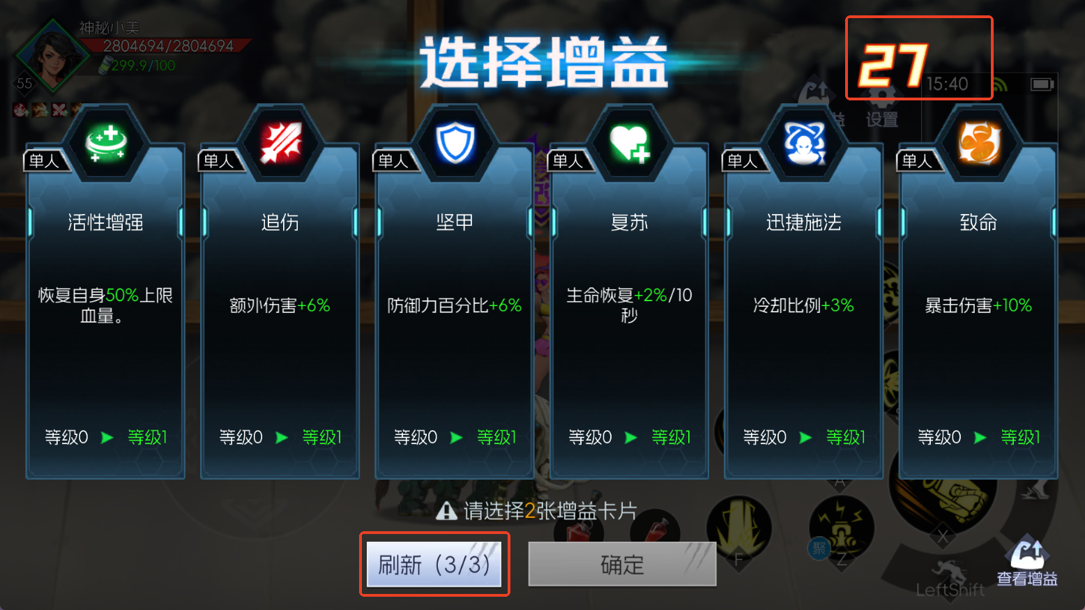 逃生之路是“趣味与挑战双在线”的宝藏副本,属性选择机制让每局都新鲜!进图先攻击摇杆5下解锁属性选择,每次选2条增益,副本共4次选择机会,重复选还能升级,追伤、暴击、冷却缩减等都有,3次刷新机会助你刷出心仪组合,打造专属强力Build。