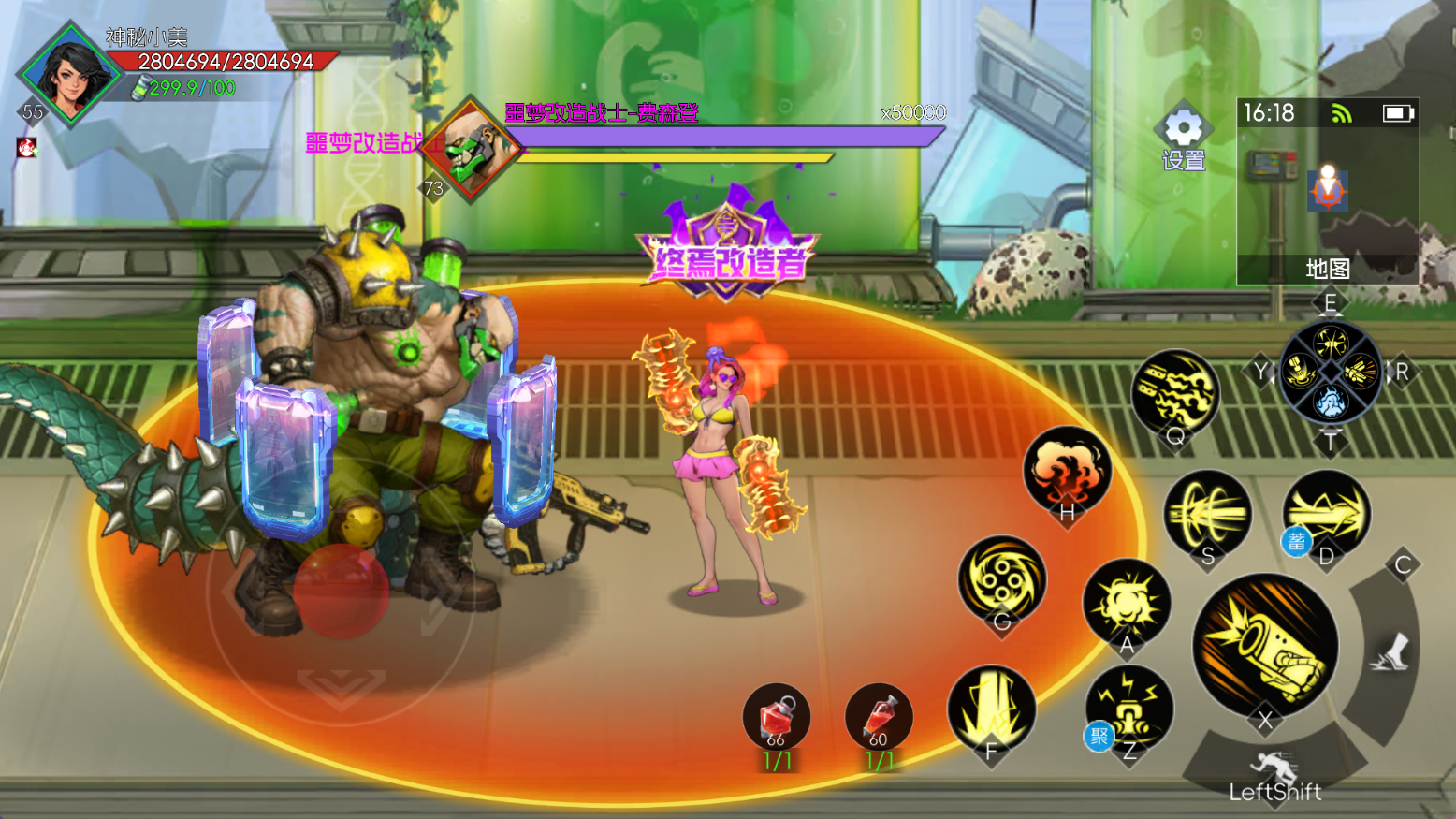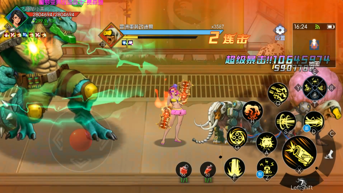 都市实验室的BOSS是《恐龙快打》里的终极BOSS—费森登博士,堪称“形态切换王者”。人形态被击败后,会变身兽形态——此时BOSS的生命值、攻击力翻倍,全屏大招压迫感拉满!