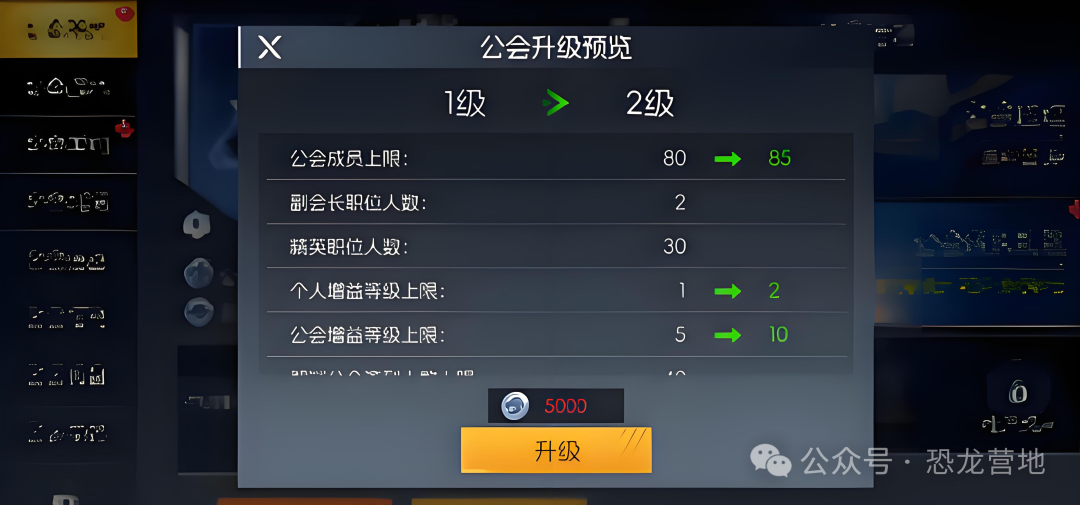 3.注意:这俩增益等级都受公会等级卡着。所以,赶紧去给公会搞钱!另外,个人增益后期需要 “增益宝石” 这种宝贝,得去秘宝里开。