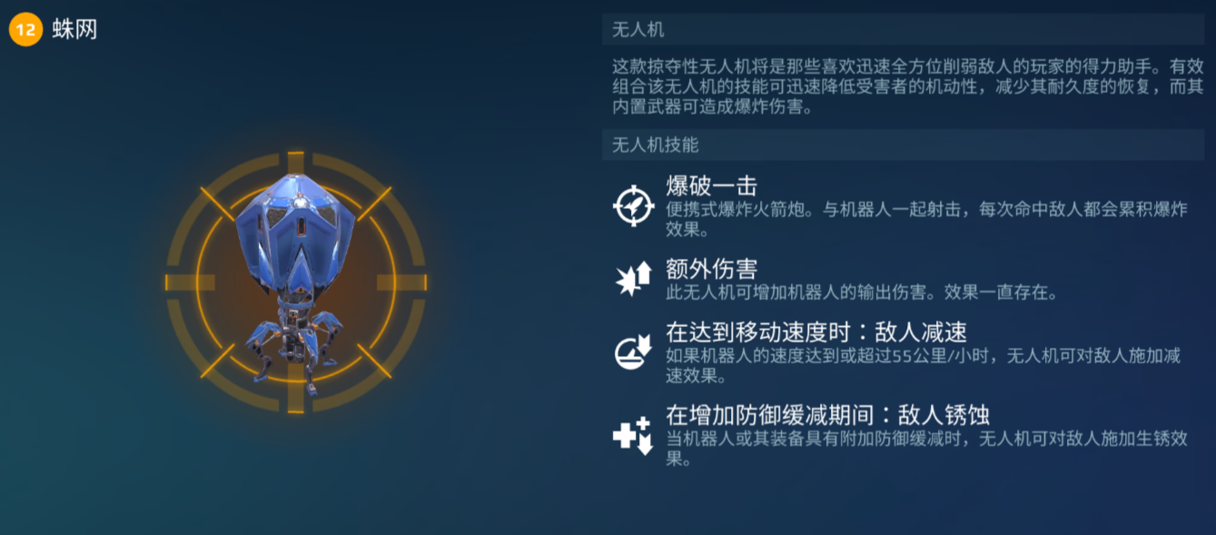 此外,无人机[蛛网]的作用主要是强化[杜克斯]的伤害能力,并削弱对手的续航,减速留人。若是期望提高综合作战能力,则首推搭载了量子传感器,提供“反隐”效果的[猎奇者],可以更好的打击目标的同时防止部分刺客的切入。而若是指挥官更加关注保命能力,可以给到防御点数、移速以及背水一战效果的[萨伊]则是不错的选择。