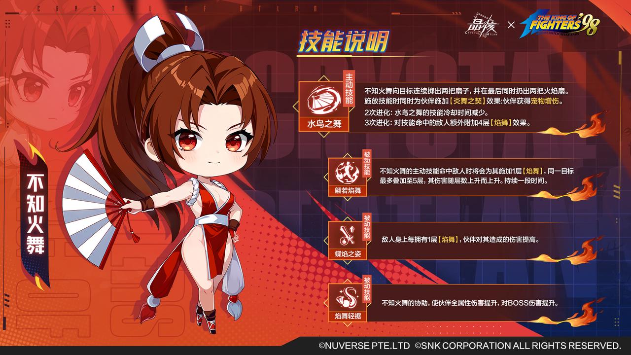无论探索冒险或是挑战强敌,「不知火舞」都将成为你最亮眼的战斗搭档!