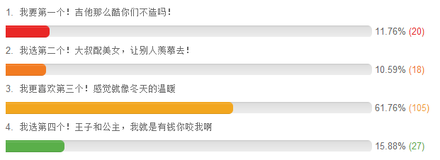 活动结果大大出乎了小瓜的意料啊,图三在投票结果中独占鳌头。原来大家希望自己的另一半是这个样子的┑( ̄Д  ̄)┍