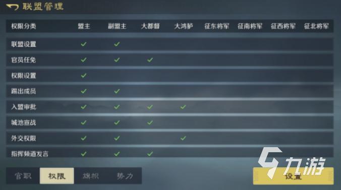 当成员多了起来之后,联盟的管理就很重要了。除了盟主,还可以设置副盟主、大都督、大鸿胪、四征将等十种管理岗位,大部分的人员的权限都可以由盟主自由分配,这样合理的分工可以让指挥更加明确清晰,避免多个人管理同时操作造成混乱,也能让不同岗位的人员转职不同的事项,例如外交、战事、招人、内部协调等等。大家各司其职,尤其是在作战高峰期,行动效率要比指挥无序的同盟好很多。