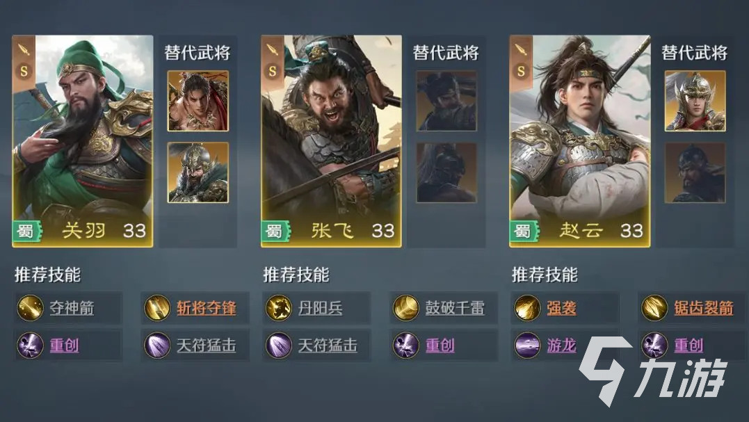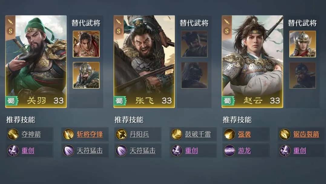 蜀国可选有赵云,徐庶,黄月英,赵云善于移速提升,带来特殊增益效果,对队伍带来效果不错;徐庶主要对敌方施加负面buff,抵御效果比较好;黄月英的定位是谋略,无策。吴国的甘宁,程普,小乔,程普和小乔都是偏向辅助的武将。