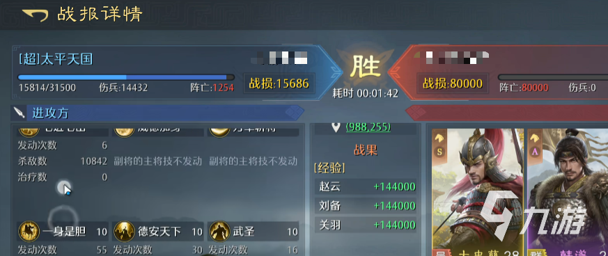 刘备还有个技能是在普攻时回复;最后一个配备其实相当于“挂件”,比如关羽就还不错,带的技能正确,可以提高80点武力,且能恢复一次兵力,主要就是携带个伤害高的,进一步提升队伍输出。