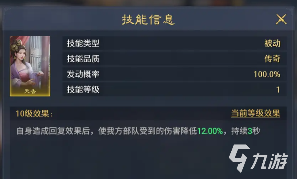 与可装配技“天香”的契合度很高,“天香”是在自身造成回复效果后,能让我方部队降低12%受到的伤害持续3秒,实战中被动的回复能反复触发,给队伍带来覆盖率超高的减伤。