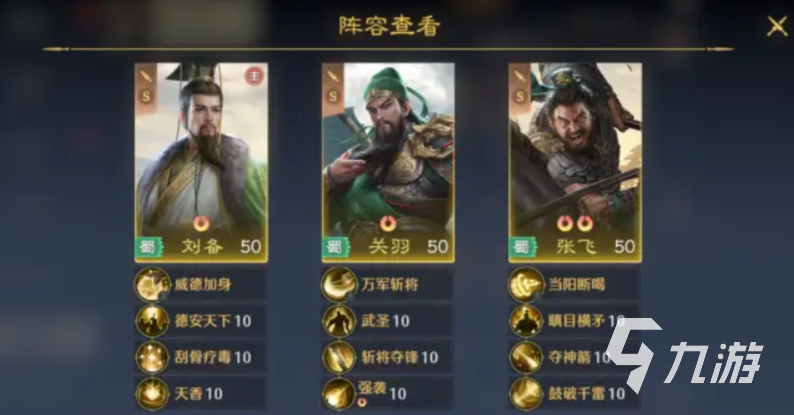 阵容配队方面比较常见的就是桃园枪,也就是刘备、关羽和张飞组成的,这套搭配的核心就是围绕重伤效果,3层重伤后敌方输出能大大降低,并且还自带桃园结义羁绊,可以额外提供开场的减伤,不管是打地还是开荒都十分不错。