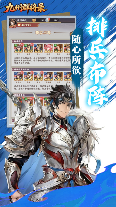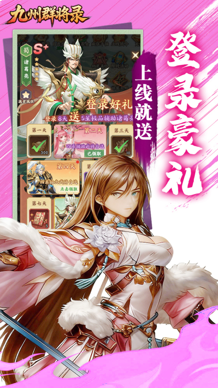 《九州群将录》是一款大型卡牌挂机回合制类型网络游戏,玩家在手机中安装后即可运行。玩家将扮演三国时期诸侯之一,通过获取武将卡牌,招募顶级武将,构建专属的武将阵容,进行三国战役,参与到雄伟壮丽的三国篇章中来。玩家在游戏中或是相互结盟,或是相互争斗,用武力,用谋略,一步一步统一乱世大陆。