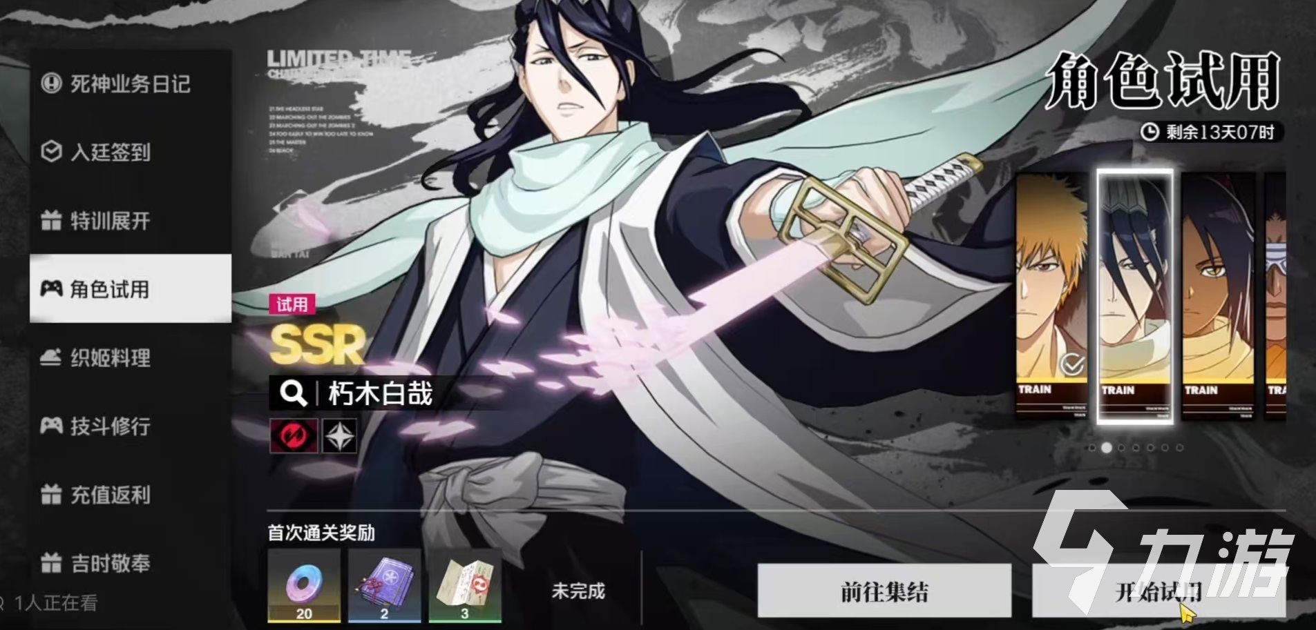 第1个推荐的是朽木白哉,朽木白哉是属于SSR级别的战术角色,它具有高控制的特点,技能光阵,可以限制敌人行动,当朽木白哉的战场技生效时,队伍中所有角色的斩系伤害获得提升。朽木白哉可以向敌人发射剑刃造成高额攻击伤害,如果释放该技能后战场技能的归零,那么此时可以再点击战场技按钮,释放一次追加攻击。必杀技开启之后,召唤出千本樱帮助进行攻击,对敌人造成高额伤害并进入万解状态,此时普攻和战技都将获得强化。万解将持续15秒钟,即使被换下场也不会解除。