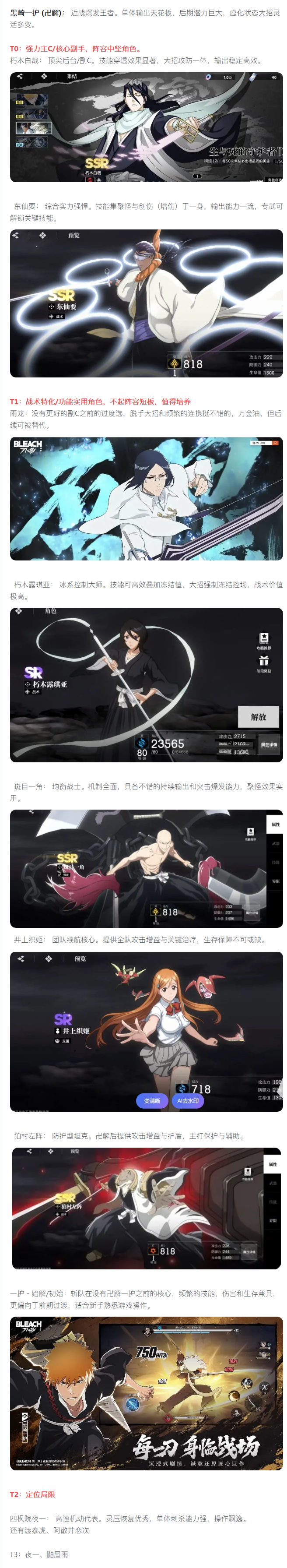 死神ip漫改动作手游《境·界 刀鸣》已经公测上线啦!虽然动作手游很强调个人操作,但每个角色机制不同,数值也有差异,各有强弱。这里便给大家带来境界刀鸣角色强度排行榜,从T0到T3给进行强度划分,方便新手玩家做选择。