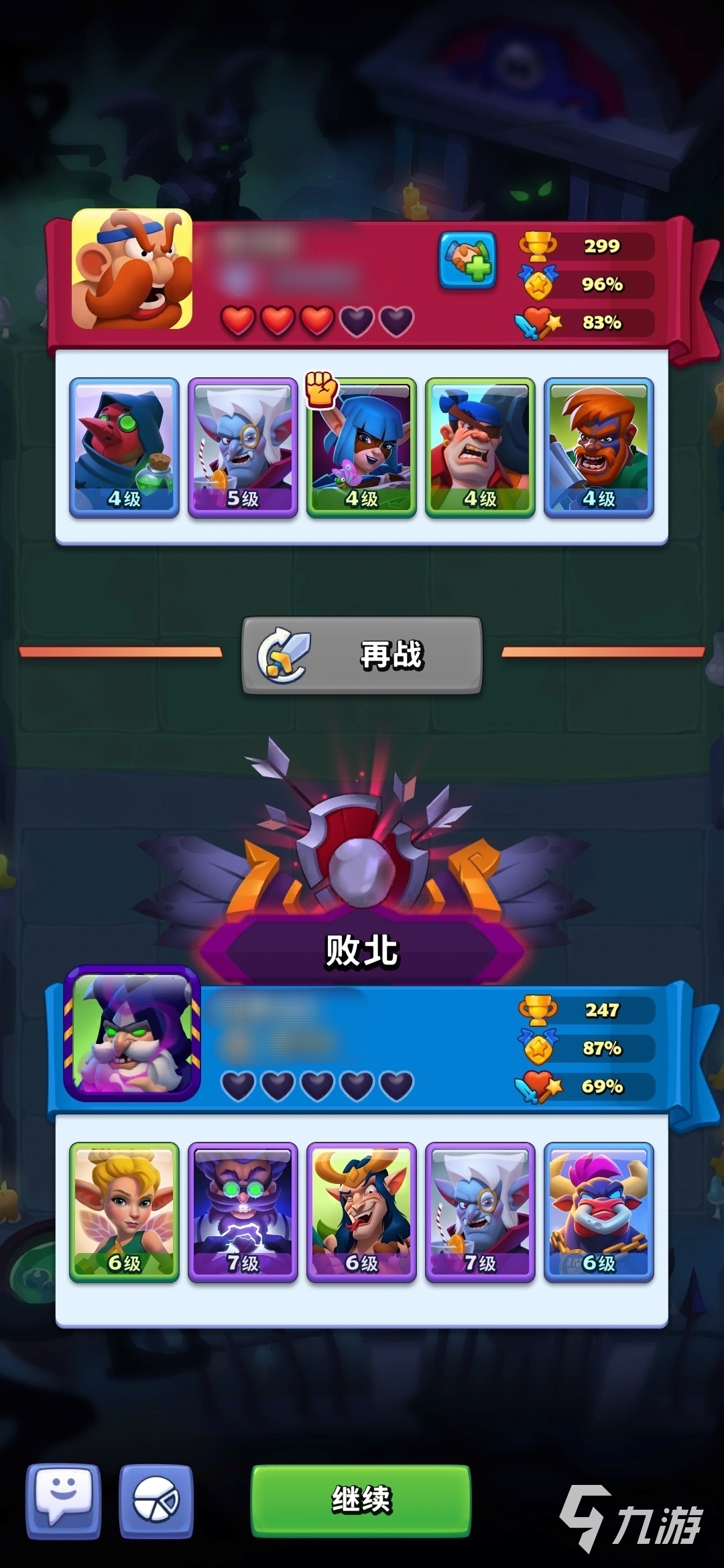 首先是卡牌的养成。游戏里的卡分为普通、稀有、史诗和传奇。很多新手一看到传奇就急着上阵,但升级成本太高,很容易陷入战力空档期。前期不要贪橙卡,优先把常用阵容里的核心的卡片先进行升级,前期比如果仙灵、米诺陶、维京战士这种低级卡片,升到高级后实际战力也非常亮眼。