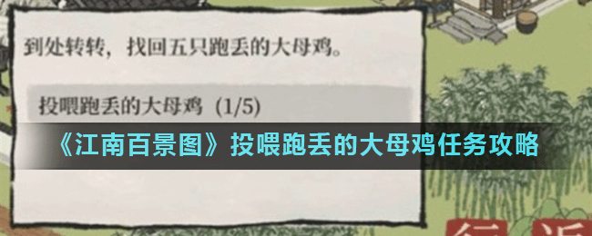 《江南百景图》游戏中投喂跑丢的大母鸡任务怎么完成?这个投喂跑丢的大母鸡任务主要是要寻找五只跑丢的大母鸡,但是很多小伙伴不知道大母鸡的位置,那么接下来小编为大家带...[详情]