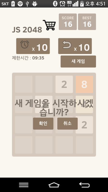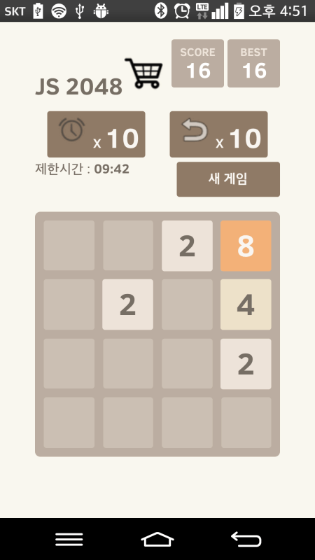 규칙시작할 때 4*4 판 위에 2개의 2(또는 4)가 있는데 키보드 방향키나 터치스크린으로 드래그하면 블록이 전부 그 방향으로 이동하면서 같은 숫자가 있을 경우 합쳐지며, 빈 자리 중 한 칸에 랜덤하게 2 또는 4가 나온다. 이를 반복해서 2로부터 2048을 만들면 게임 끝. 만약 2048을 만들기 전 이동할 수 없는 경우 즉 16칸이 꽉 차있으면서 인접한 두 칸이 같지 않을 때, 게임 오버가 되며, 2048을 만듦과 동시에 이동 불가면 역시 마찬가지이다. 클리어가 클리어가 아니라니!!! 참 쉽죠? 이런 게임만 보면 별 거 아닌 것 같지만... 은근히 중독성이 있는 것도 있는데 어렵다. 이 때문에 은근 막장제조 게임이라고 주장하는 사람도 있다. 물론 생활에 지장이 갈 정도로 만들지는 않는다. 숫자를 뭉칠 때 3개~4개가 한꺼번에 뭉쳐지지는 않는다. 예를 들어, 4-4-4-4 이렇게 되어 있거나 4-4-8 이렇게 되어 있을 때 뭉치면 8-8로 되고 바로 16으로 되지는 않는다. 물론 8-8로 된 상태에서 한 번 더 뭉치면 16으로 되는 건 맞다. 즉, 4-4-4-4나 4-4-8 이렇게 된 것을 16으로 뭉치려면 두 번 뭉쳐야 한다는 얘기. ---- 개발자 연락처 : +82102938743