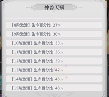 每个神兽升阶后给到的属性也是相当的高