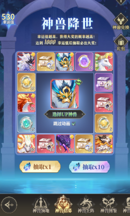 神兽招募中可以许愿想要的红色品质神兽,许愿后有百分之八十的概率获取指定的神兽。