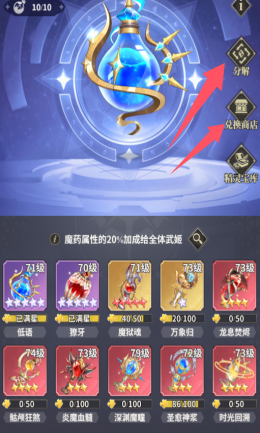 多余的魔药碎片可以分解,并在兑换商店换取指定的魔药碎片。