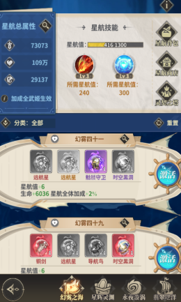 激活或者升级航线后,增加星航值,星航值加满可以使用星航觉醒石升级航线技能