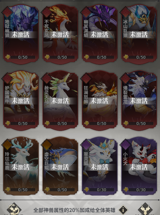 神兽先把图鉴开满,图鉴开完后优先给狮子和龙升至 12 星后天启(2 个神兽天启石,50 该神兽碎片),第三只我会选牛(复活吧,我的武将!),第四只我选毒蛇或狼,神兽 4 只都天启后可以上阵 8 个。(可以把神兽战令先获取上)。
