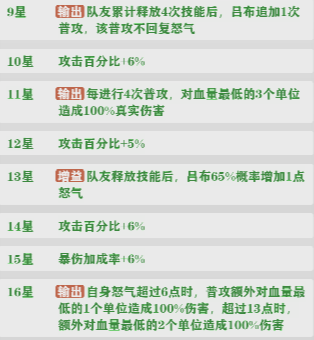 貂蝉释放技能时有概率魅惑对方单位。成功魅惑对方单位吕布会对目标追击一次普攻且必定命中。魅惑失败有概率增加吕布1点怒气且减少目标怒气并且降低该单位攻击力和减伤。
