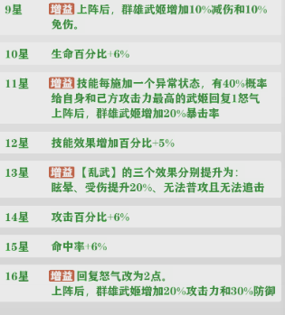 陆逊上阵可以给吴国武姬增加大量属性。自身所在纵排武姬无法被沉默。