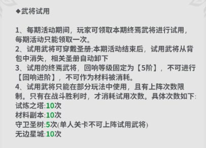终焉活动开启后在活动期间可以试用终焉武姬但是只能在部分玩法使用并且有次数限制,可以通过这个试用体验终焉武姬的效果。