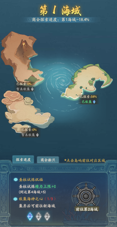 各位掌柜将在各个海域进行探索收集碎片,并完成各位圣柱的试炼。