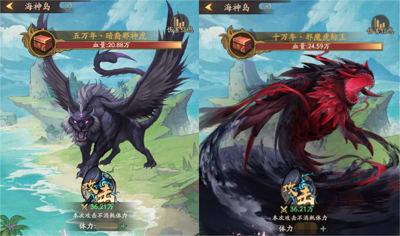 魂兽战斗:岛屿上除了曾经见过的陆地魂兽外,还将有不少深海魂兽出没,从常见的魔鬼鱼到百万年修为的深海魔鲸王,各个都是实力强劲,若是遭遇掌柜还需谨慎应对。