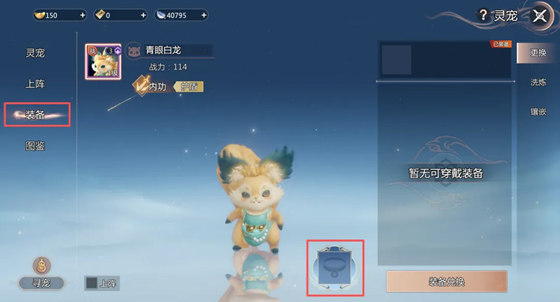 ○ 灵宠装备可进行属性洗炼、镶嵌符章、共鸣等操作。