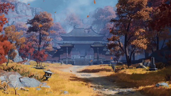 黄云碛里马蹄行,石佛垂眉看古今。峡谷深处半壁石佛宝相庄严中带着岁月沧桑,正是“天地为炉,造化为工”的最佳写照。在当前的技术加持下,场景内沙尘弥漫的朦胧感得以细腻表现。立于佛掌之上,捕捉衣袂与飘零枫叶的同频瞬间,少侠的人生照片就是这张了!