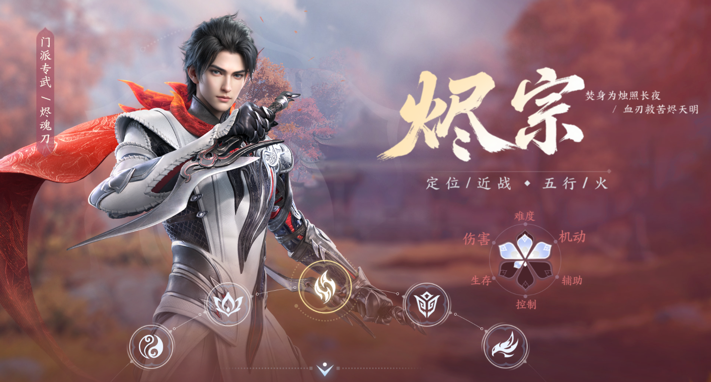 千机门派是远程木系输出,通晓机关奇术,善于与敌方拉开距离,利用机关活力,射程优势压制对手。最后一个是烬宗门派,火属性,擅长打单体爆发,招式凌厉,还能召唤暗影协同攻击。