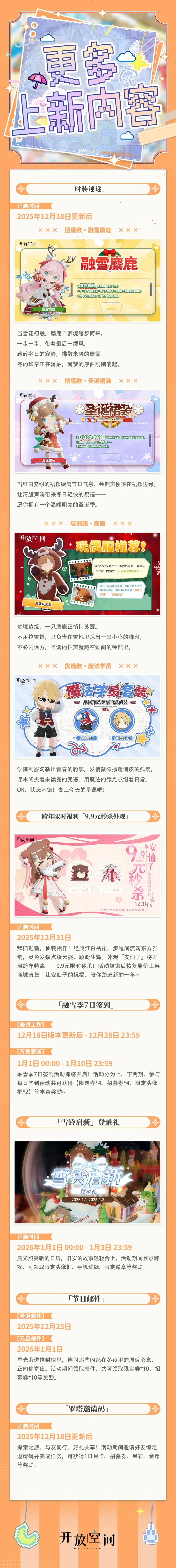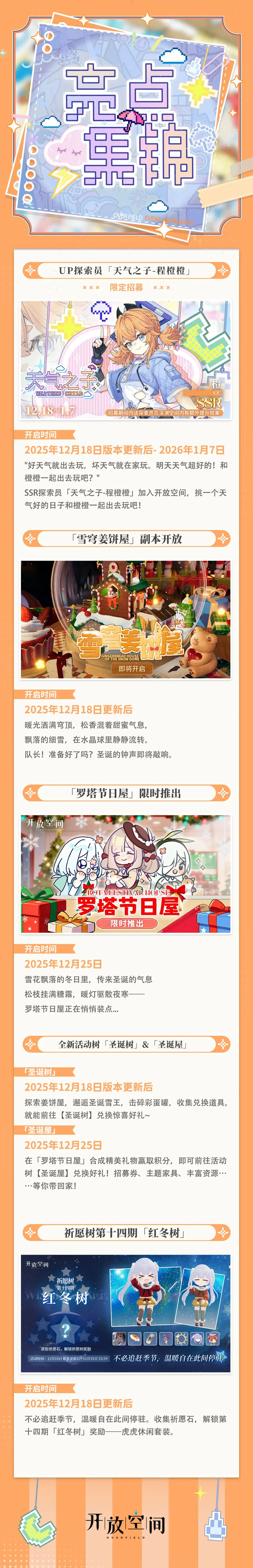 新探索员天气之子-程橙橙登场,全新载具畅行空间,姜饼屋副本限时推出,圣诞系列时装上新,多重福利喜迎双旦...
