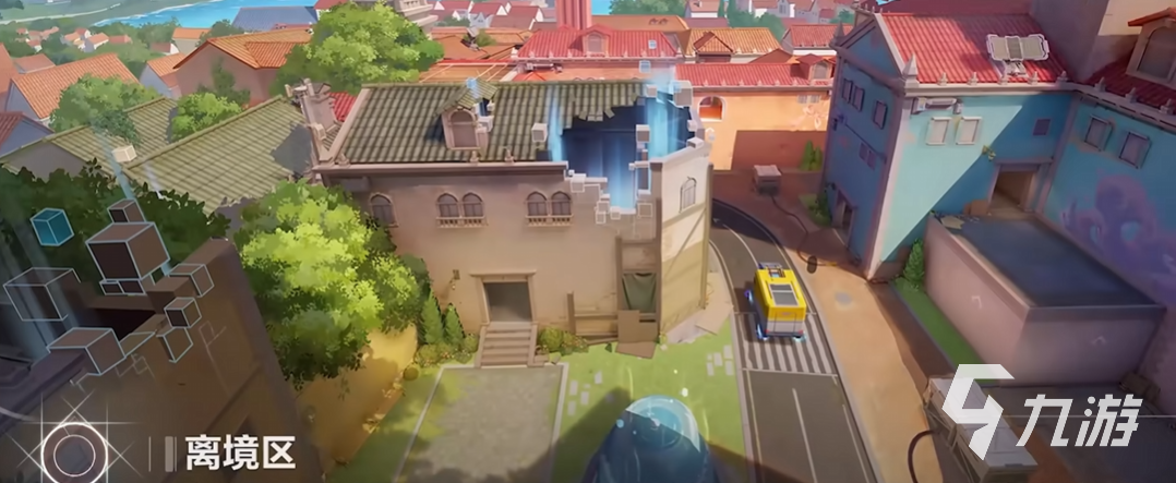 在这张地图当中,同样有两种身份进入,如果玩家们是以进攻方的身份进入到地图中,会出生在地图的下方区域,这里能看到两条可以走的道,一条是在二楼的小道,另一条则是地面上直接能走的大道,最好是派出一个队友走小路,这个队友最好还是自由人。