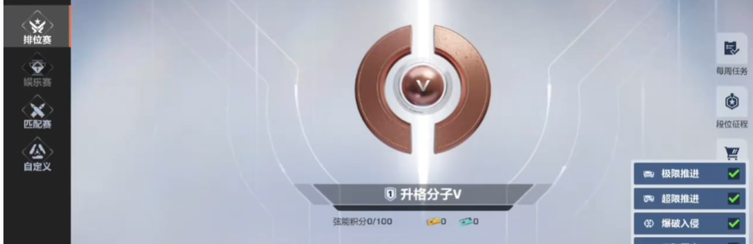目前排位分为8个大的段位,段位提的越高,后需的挑战难度自然越大,能让大家在竞技过程中不断提升作战实力。每一个段位,都需要5颗星,才能晋升,段位成功晋级后,后需匹配的队友实力也会相信更加强大。