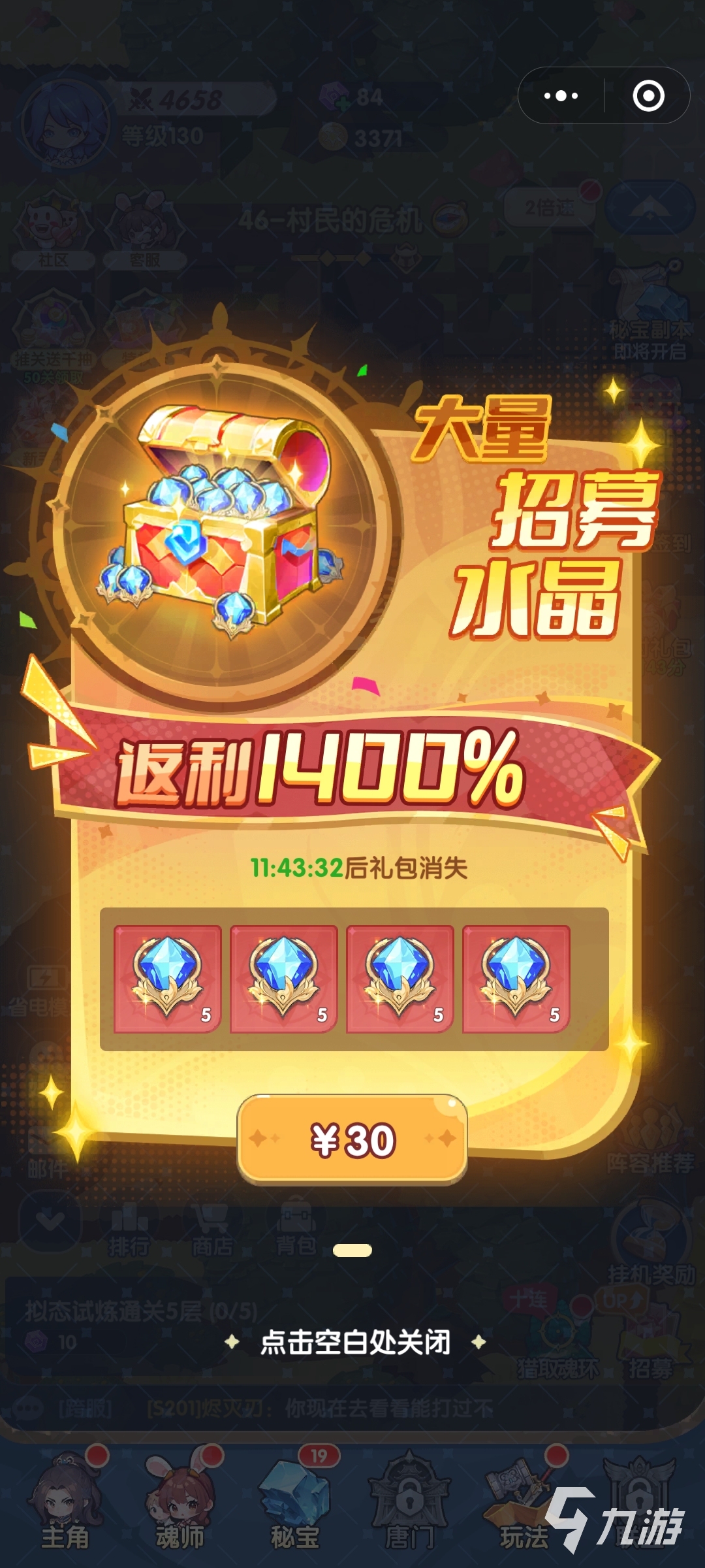 如果玩家希望进一步加快进度,还可以考虑30元的限时礼包,它能带来一大笔额外水晶,这样就能补齐戴沐白、朱竹清和宁荣荣,就能快速凑齐完整阵容。整体投入大约百元左右,就能让史莱克七怪速推流全面上线,对于微氪玩家而言,这样的性价比几乎无可替代。