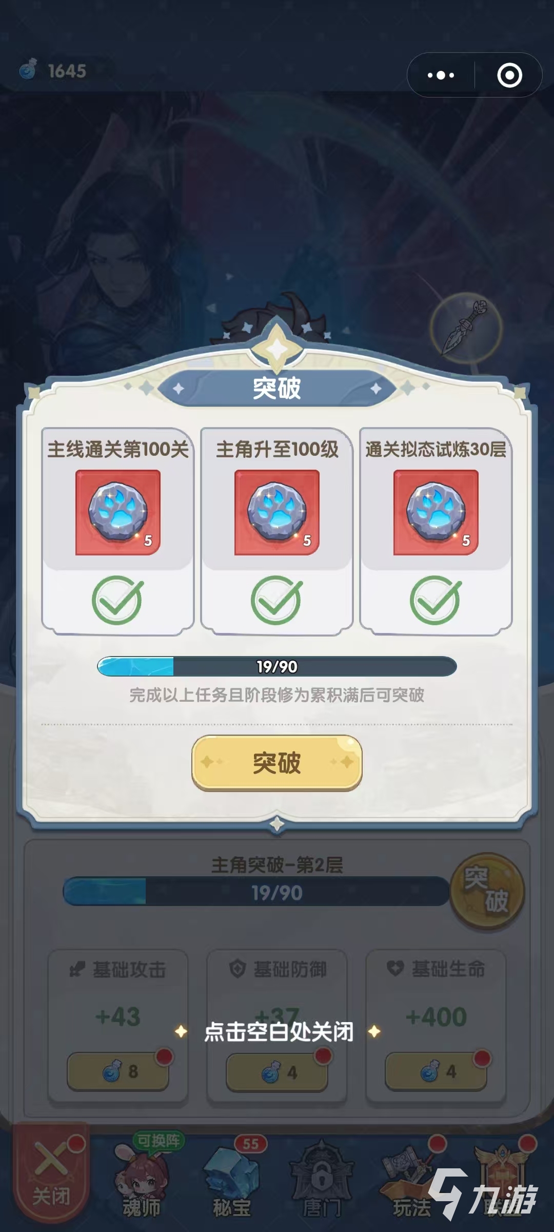 主角的晋升必须完成突破任务,这些任务会随着阶段不同而变化。前期的突破条件相对简单,比如通关第100关卡即可突破魂士阶段。随着等级的提升,突破要求会逐渐增加,可能需要击败更强大的Boss、收集高年限魂环或魂骨,甚至完成专属剧情任务。这些条件让每一次突破都充满挑战,也让玩家的成长之路更有仪式感。