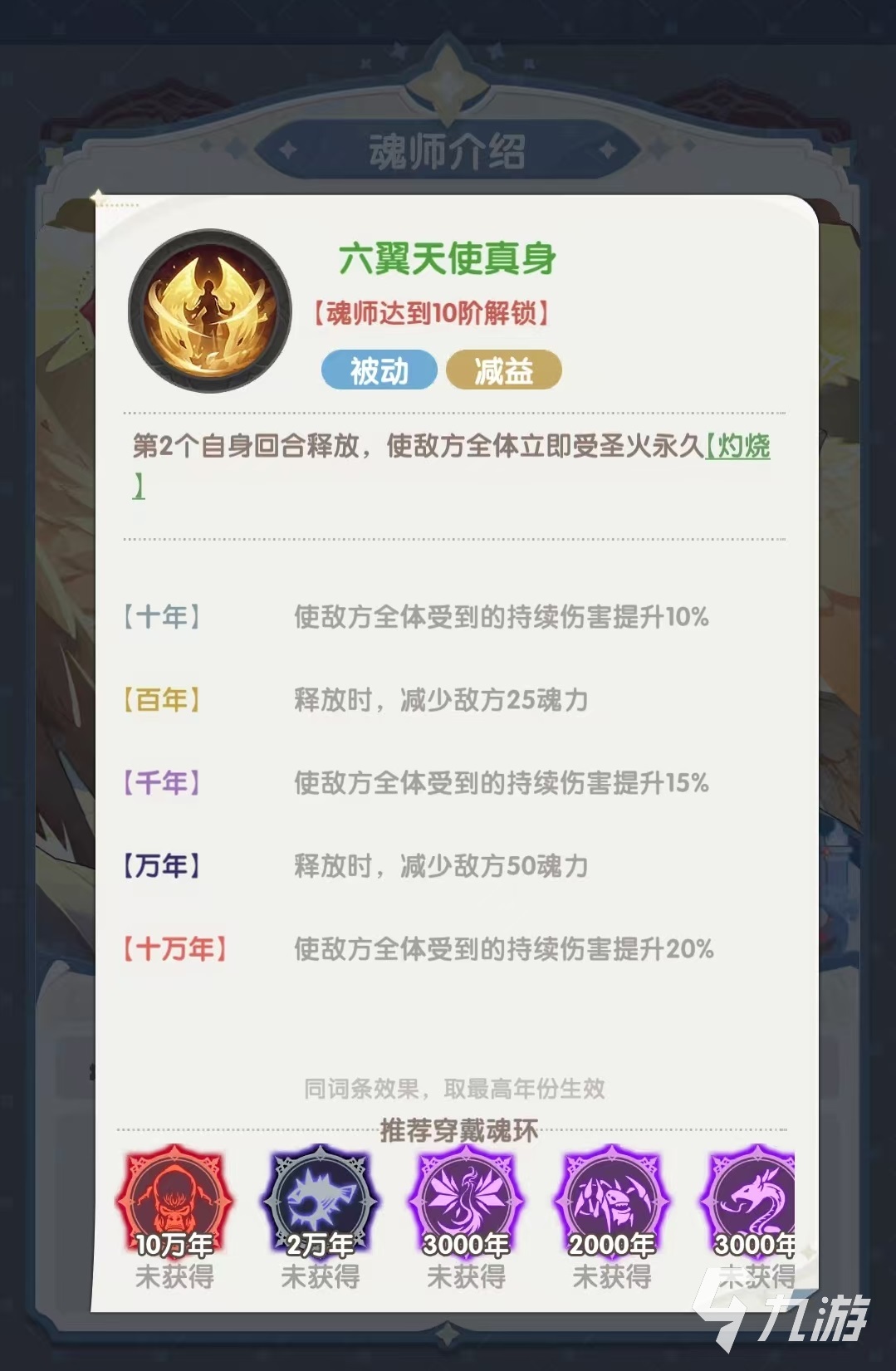 最后一个被动六翼天使真身,在第二回合释放,使得敌方全体受到灼烧效果,还能附加减少对方魂力,使对方全体受到持续伤害提升等附加状态。灼烧和审判都是属于持续伤害类型,二者的伤害属性并不相同,对于千道流来说,最佳的选择就是走持续伤害路线,配合上其他能够造成各种异常伤害的队友,这样就能将自身的全部被动都发挥出最佳效果,且前排非常能扛,打持久战也不怕。