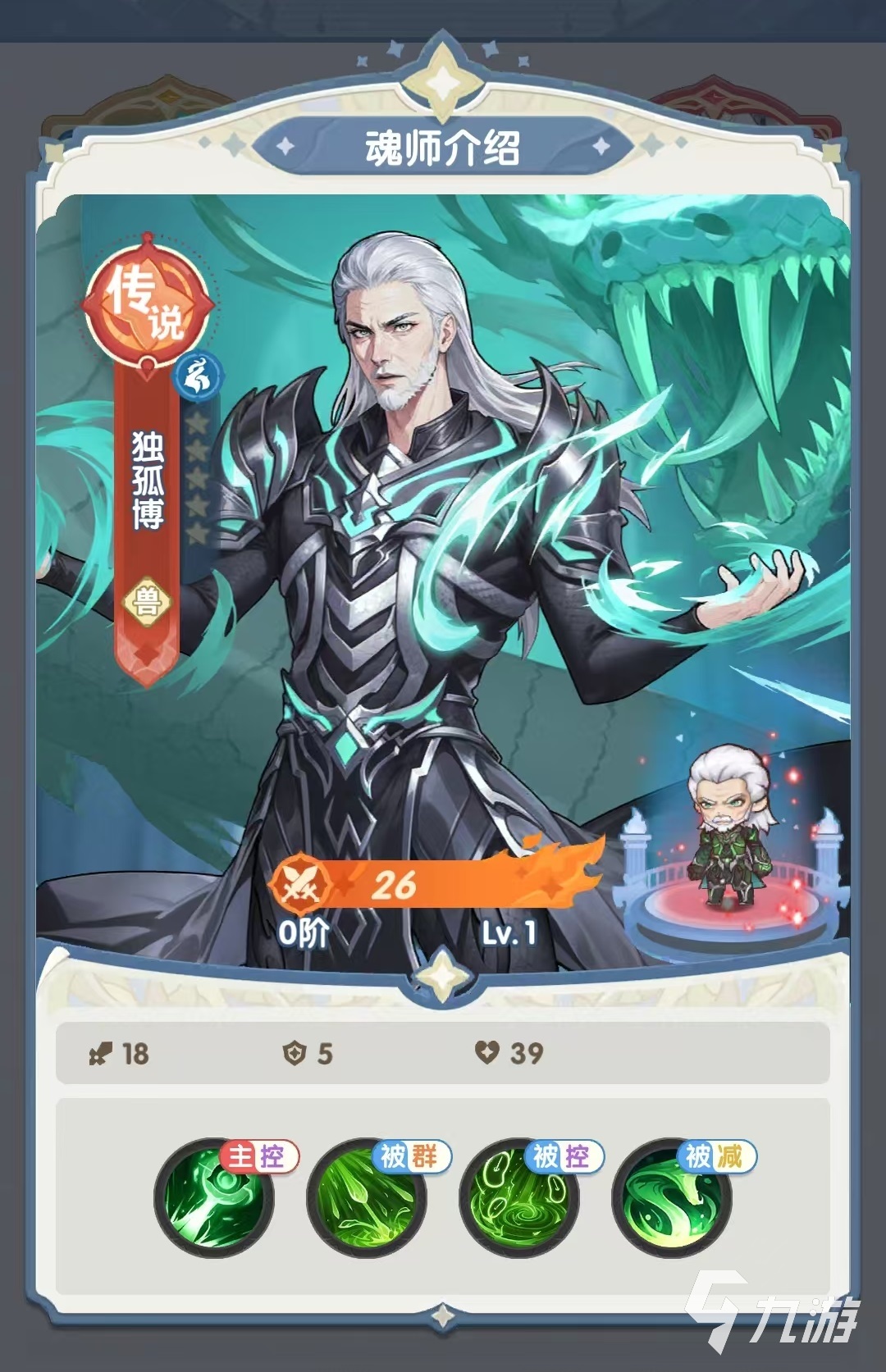 独孤博在口袋斗罗大陆这款游戏中被设置成了专注于限制对方行动的控制系魂师,这也符合自身在斗罗中的设定,今天就一起来看一下口袋斗罗大陆独孤博怎么样。独孤博在游戏中也是属于传说品质的魂师,但获取的难度比较低,所以很多玩家都能够轻松将星级提升上来,这就使得他的出场率很高。