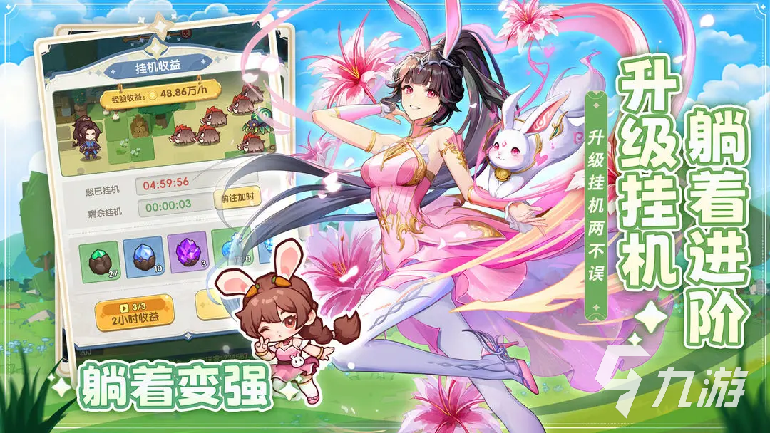这游戏本质就是挂机升级那一套,节奏很清晰:先强化主角,然后推关卡、做任务、升等级,接着再强化,循环往复。整个过程特别规律,只要你手速不慢,一两分钟就能走完一个轮回,马上开启下一轮。 中间偶尔穿插个“秘宝”环节,其实就是抽个蛋拿点零碎奖励,换换口味。整体玩起来毫不费脑,每一步该干啥都明明白白,上手零门槛。但问题也在这,天天重复同样的节奏,干着同样的事,时间一长就容易腻,总觉得在原地打转。