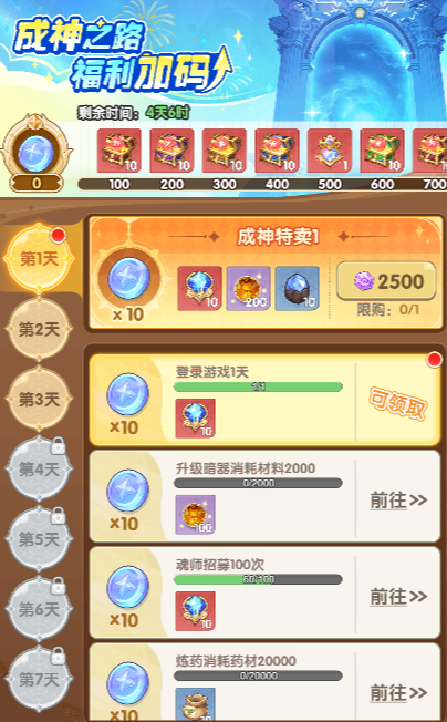 - 第一天至少需要通关500关,解锁魂兽追击,提前拿到魂骨。如果第二天才解锁魂兽追击的话,就追落后一天的进度