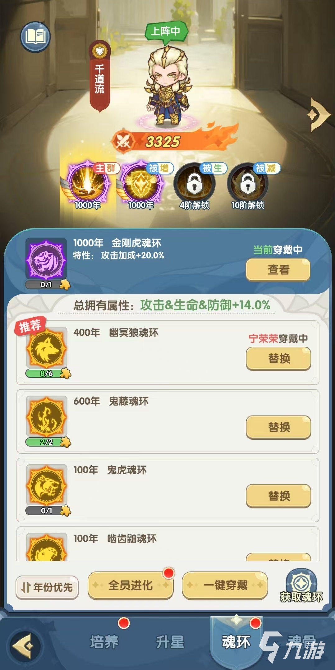在游戏中玩家收集到新魂灵碎片后,就可以获得图鉴的收集度,收集达到一定属性后,可提升图鉴等级,能激活对应的加成属性。这里的属性加成,是对所有上阵还是生效的。在游戏中魂灵相关的一共有四大类玩法,分别是魂灵重置、魂灵升星、魂灵进化进阶和魂灵共鸣。魂灵重置指的是进化后的魂灵、可重置年份和阶级、并且返还100%的材料,这样大家就可以放心进行培养。