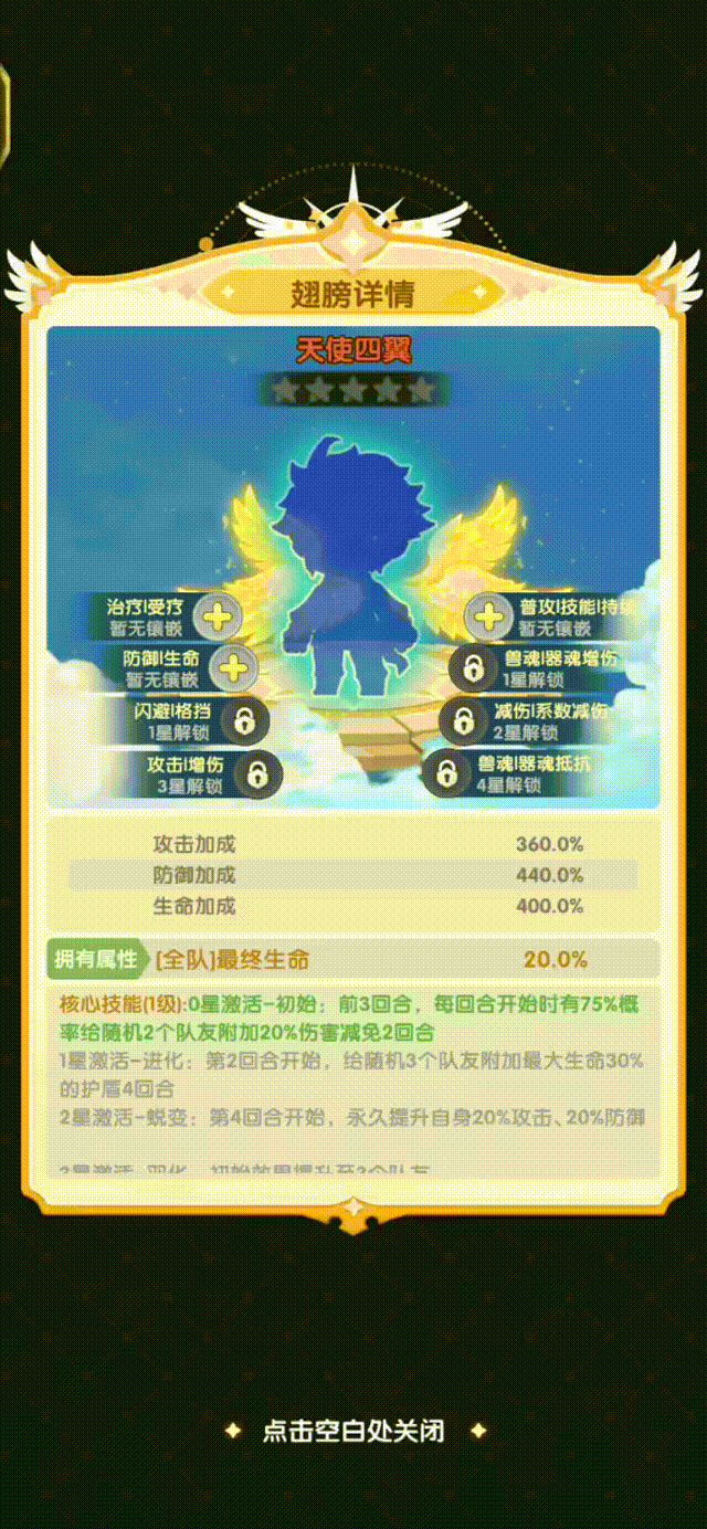 6星激活-羽化:每回合结束,提升的攻击增至10%,最多5次