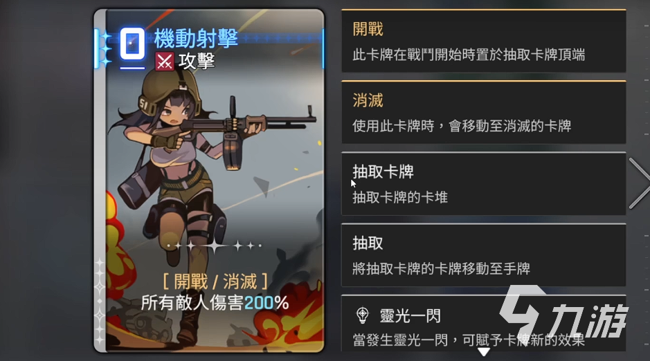 第二个就是快速拔枪,这个牌主要是用于打大型boss,因为这个牌获取的数量偏多,容易凑齐多张形成连击,而且伤害倍率也不错,单张触发即可造成有效伤害,叠加使用后可以一回合内打出多道伤害。它的技能冷却极短,无需长时间等待能量积累,所以很适合在速攻阵容中使用哦,能在boss释放关键技能前快速压低其血量,降低战斗风险。