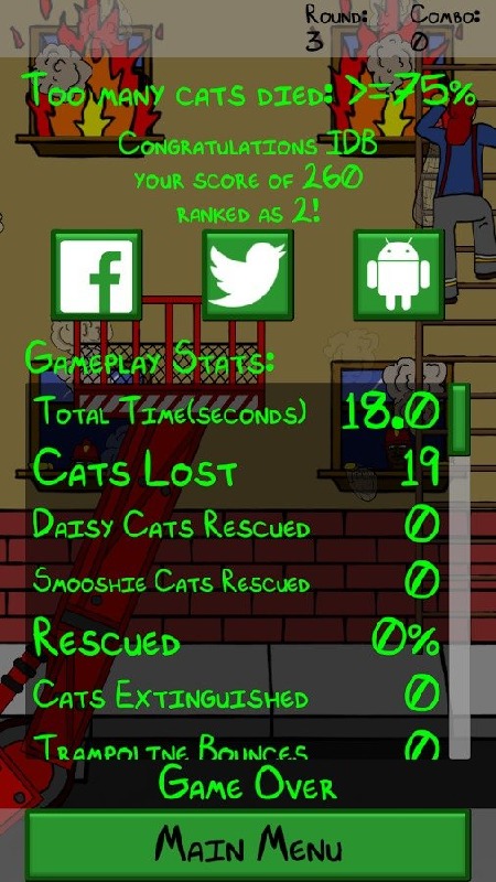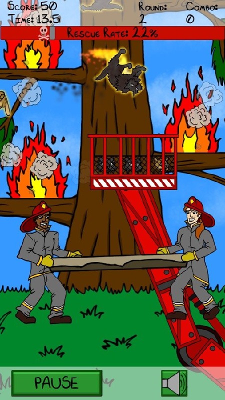 Kitten Rescue is lighthearted fun for all ages. Play as a team of fire fighters working hard to save the kittens from fire. Kitten Rescue features a simple control scheme, high scores list, customized audio and input settings, social network connectivity, and endless hours of fun. *** No Ads! ****** Entire game experience and content is FREE ***See below for explanation about In-App purchasesAbout the Permissions Required:HARDWARE (VIBRATE) - utilize devices with a built in vibration device to enhance gameplay (may be disabled in settings menu)INTERNET - connect to social media sites like Facebook or Twitter so you can share your scoresBILLING - see belowAbout the In-App Purchases:This game is downloadable and playable for free. There are no ads. I am offering it for free along with a "pay what you want" option from within the game. This is the only reason it contains In-app purchases. They aren't really for purchasing content or unlocking more features; instead they are there for you to pay me what you think this game is worth. All money is greatly appreciated and will go toward me continuing to make fun games!
